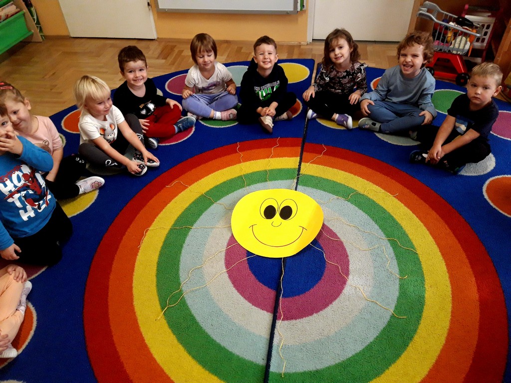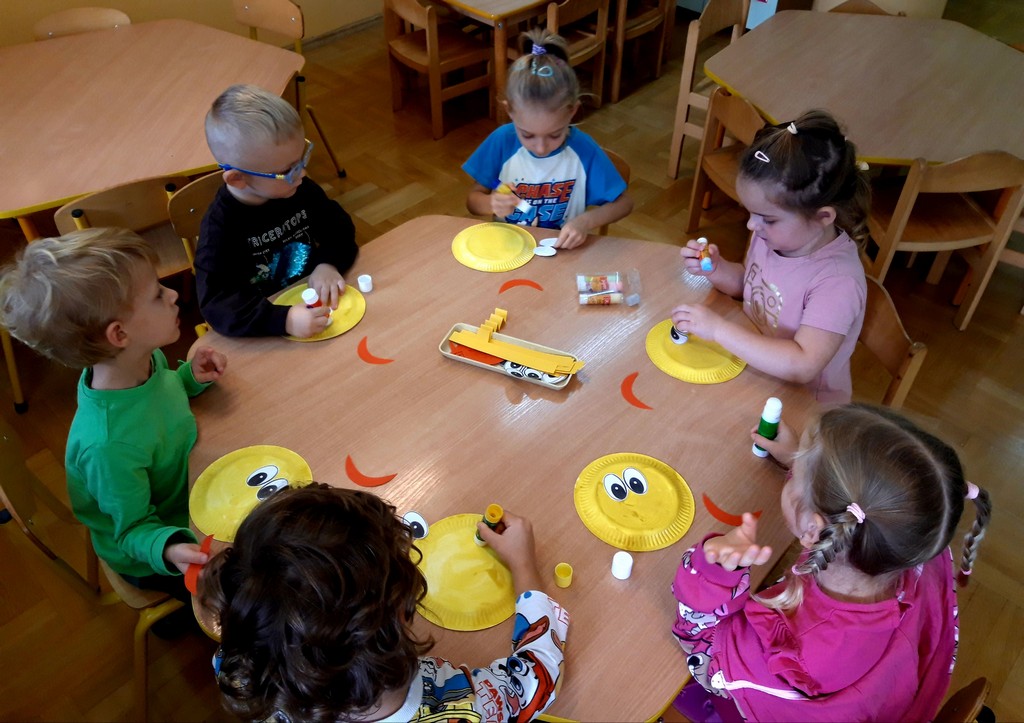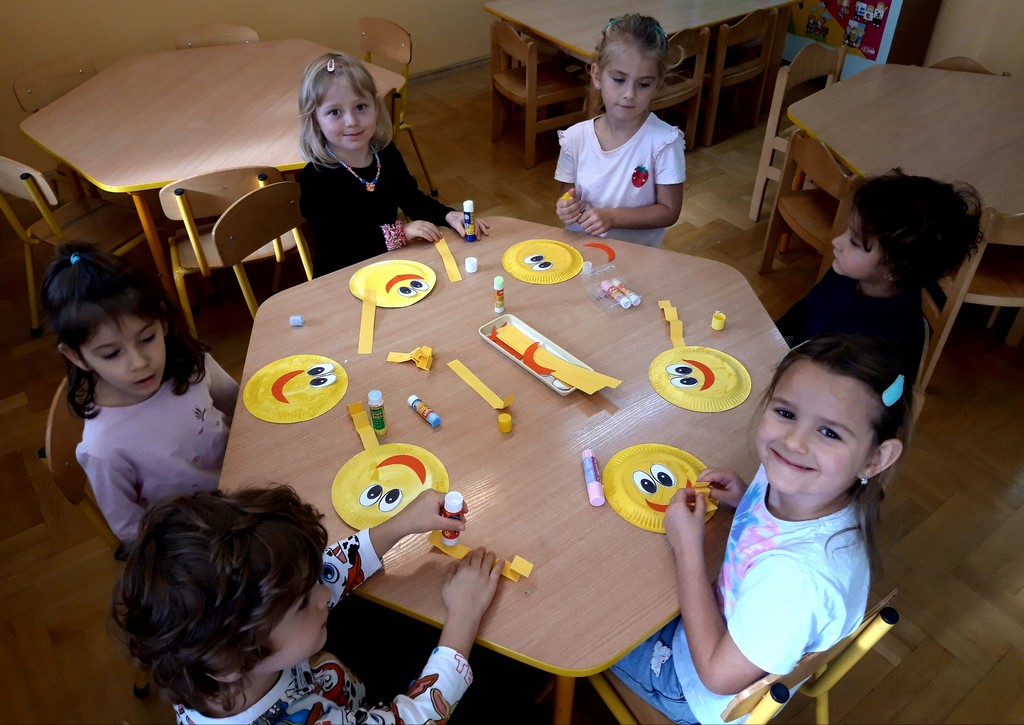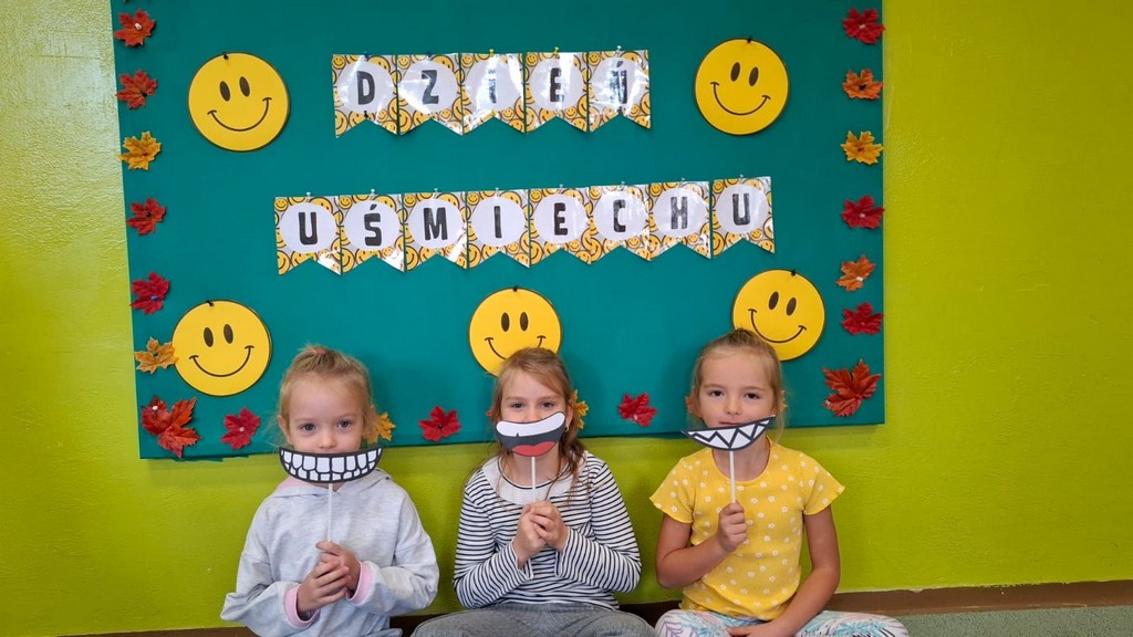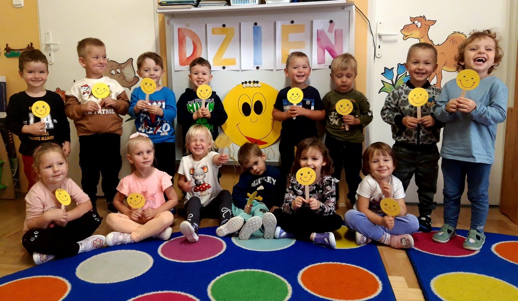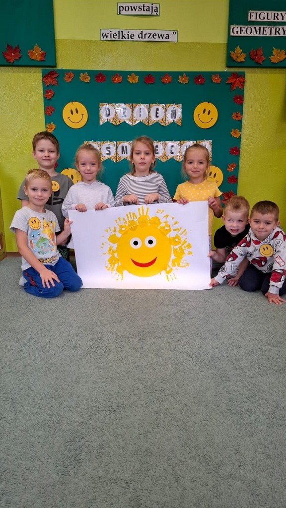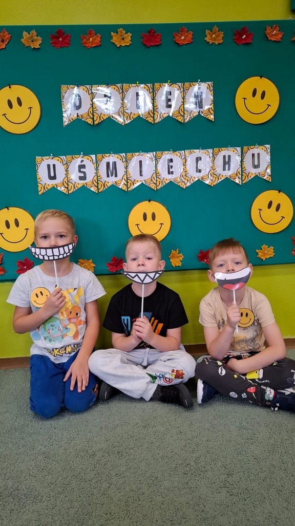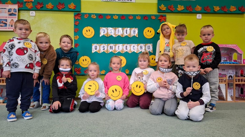 Dnia 3.10.2025 r. obchodziliśmy „Światowy Dzień Uśmiechu”. Jest to święto, które przypomina nam, że uśmiech jest ważny, bo poprawia nastrój, dodaje energii i wzmacnia odporność, a przy tym jest darmowy i zaraźliwy. Z tej okazji kolorowaliśmy uśmiechnięte buźki, wykonaliśmy wesołe medale, słoneczka, które jeśli na nie popatrzymy będą nam poprawiać samopoczucie. Były też rymowanki, zabawy ruchowe oraz tańce przy skocznej muzyce. W tym dniu staraliśmy się być szczególnie mili i serdeczni wobec siebie. Postanowiliśmy, że odtąd będziemy się dzielić dobrym nastrojem z innymi i wszystkich obdarowywać szczerym uśmiechem. Pamiętajmy każdego dnia, że śmiech to zdrowie!