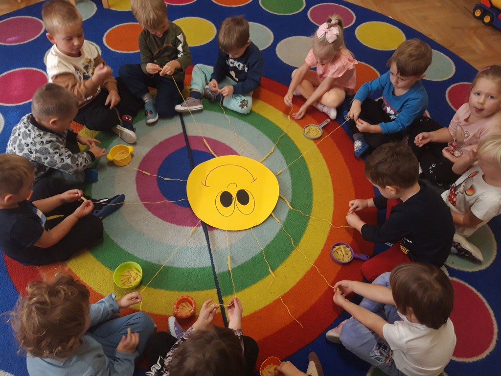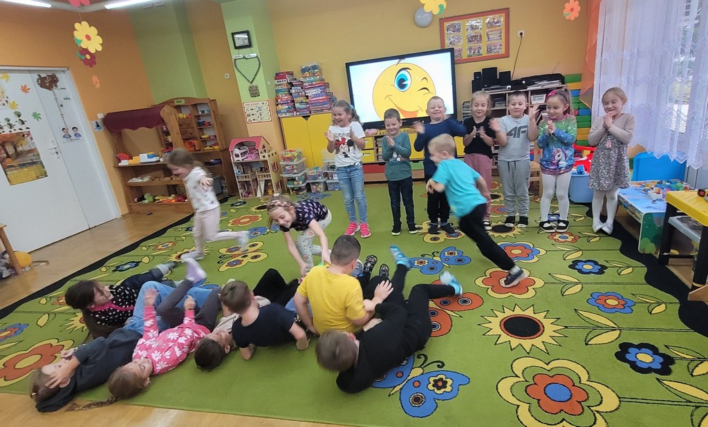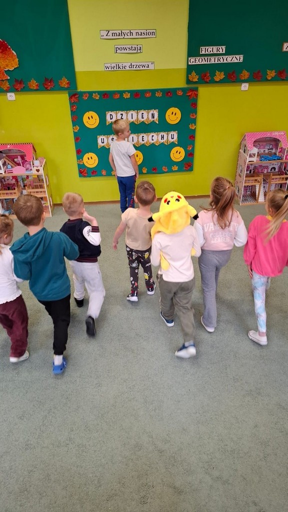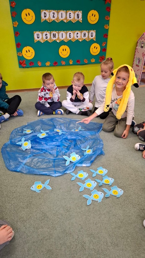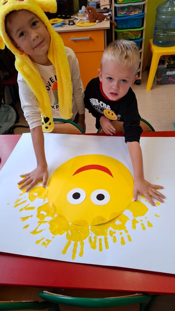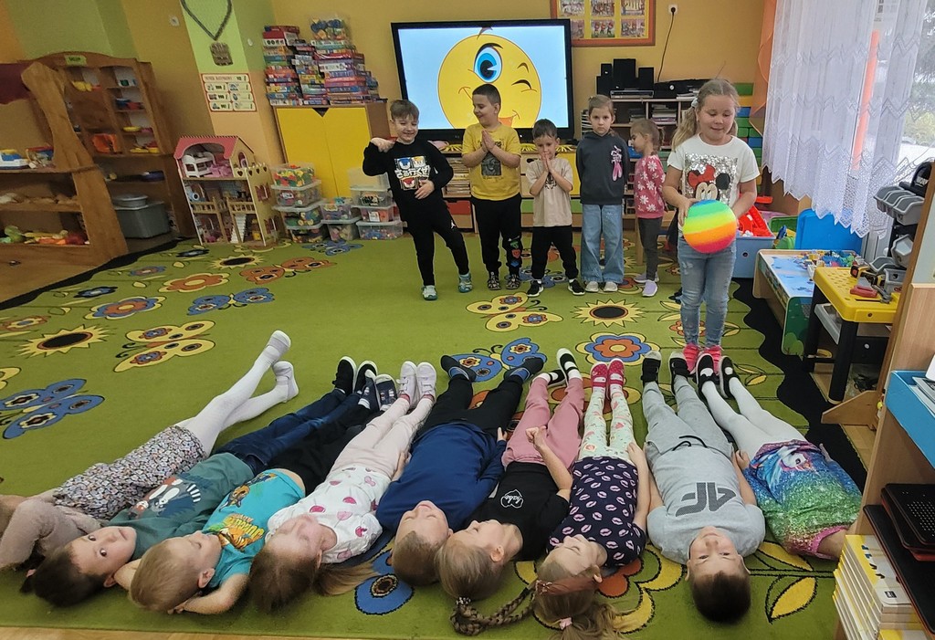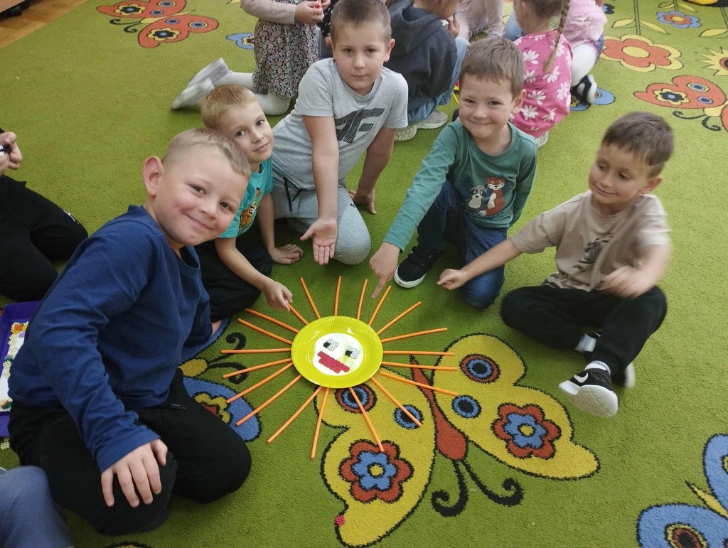Dnia 3.10.2025 r. obchodziliśmy „Światowy Dzień Uśmiechu”. Jest to święto, które przypomina nam, że uśmiech jest ważny, bo poprawia nastrój, dodaje energii i wzmacnia odporność, a przy tym jest darmowy i zaraźliwy. Z tej okazji kolorowaliśmy uśmiechnięte buźki, wykonaliśmy wesołe medale, słoneczka, które jeśli na nie popatrzymy będą nam poprawiać samopoczucie. Były też rymowanki, zabawy ruchowe oraz tańce przy skocznej muzyce. W tym dniu staraliśmy się być szczególnie mili i serdeczni wobec siebie. Postanowiliśmy, że odtąd będziemy się dzielić dobrym nastrojem z innymi i wszystkich obdarowywać szczerym uśmiechem. Pamiętajmy każdego dnia, że śmiech to zdrowie!