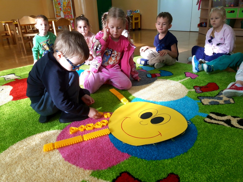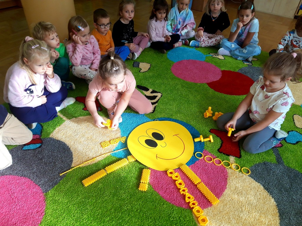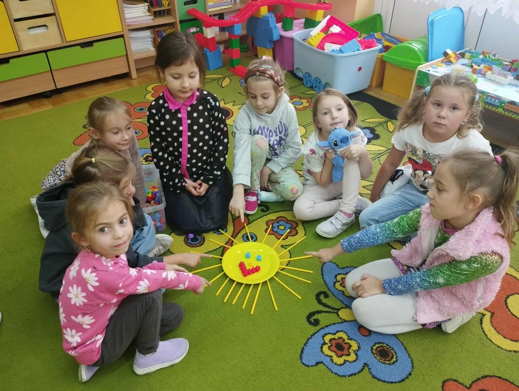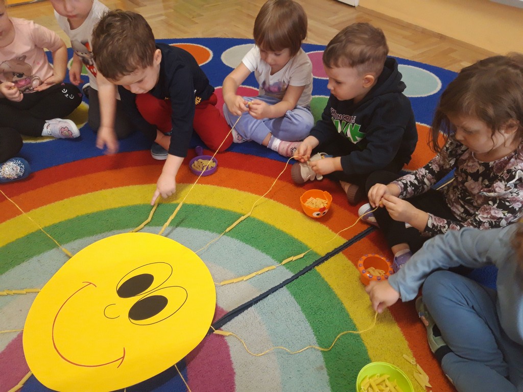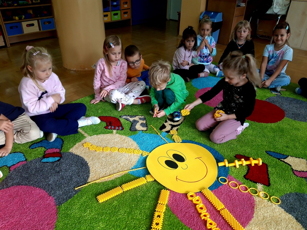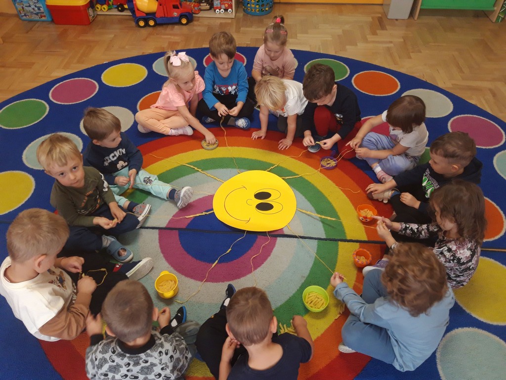 Dnia 3.10.2025 r. obchodziliśmy „Światowy Dzień Uśmiechu”. Jest to święto, które przypomina nam, że uśmiech jest ważny, bo poprawia nastrój, dodaje energii i wzmacnia odporność, a przy tym jest darmowy i zaraźliwy. Z tej okazji kolorowaliśmy uśmiechnięte buźki, wykonaliśmy wesołe medale, słoneczka, które jeśli na nie popatrzymy będą nam poprawiać samopoczucie. Były też rymowanki, zabawy ruchowe oraz tańce przy skocznej muzyce. W tym dniu staraliśmy się być szczególnie mili i serdeczni wobec siebie. Postanowiliśmy, że odtąd będziemy się dzielić dobrym nastrojem z innymi i wszystkich obdarowywać szczerym uśmiechem. Pamiętajmy każdego dnia, że śmiech to zdrowie!