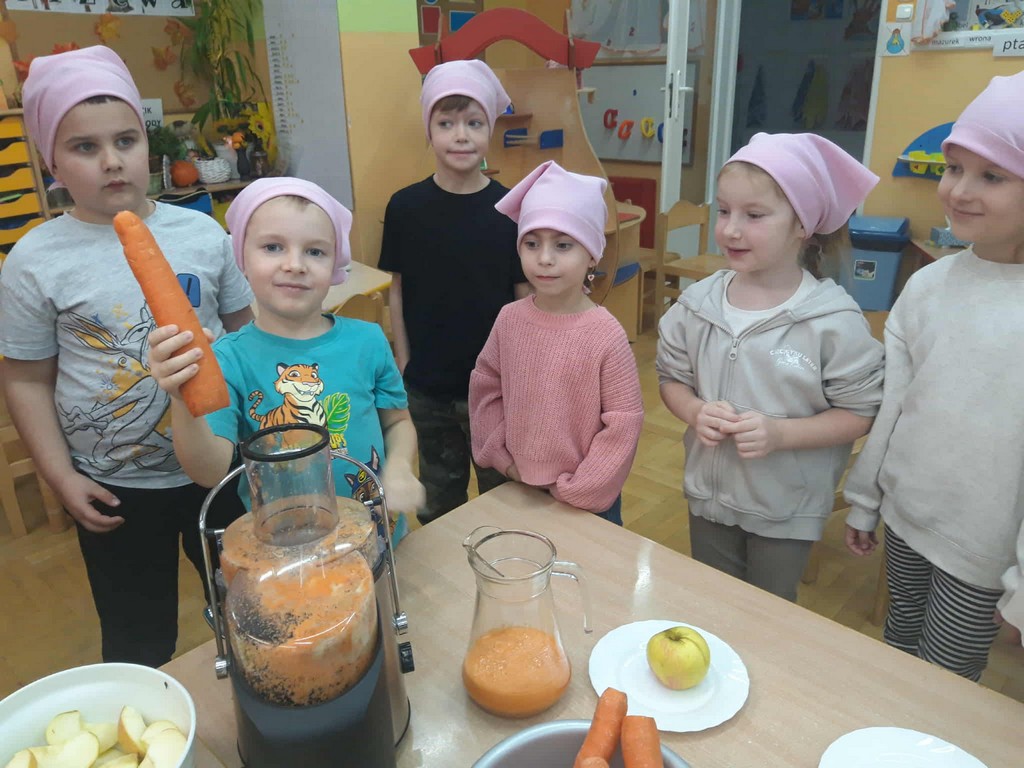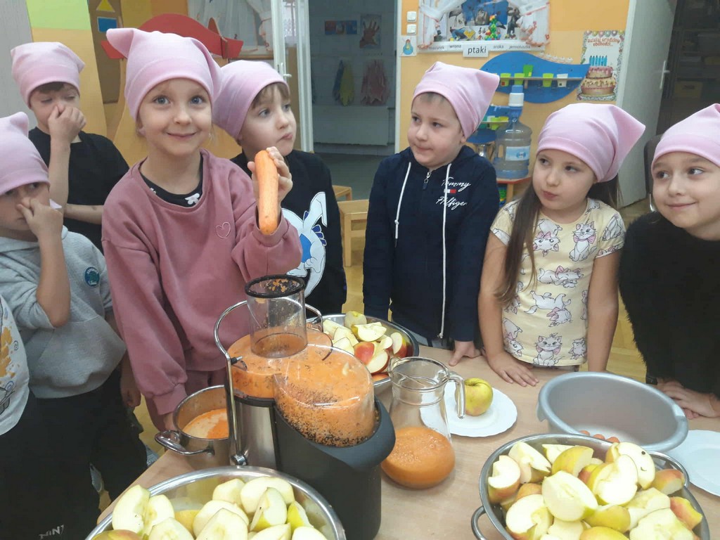 Pyszny i zdrowy sok jabłkowo-marchewkowy w wykonaniu dzieci w grupy I i III