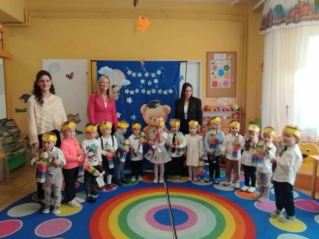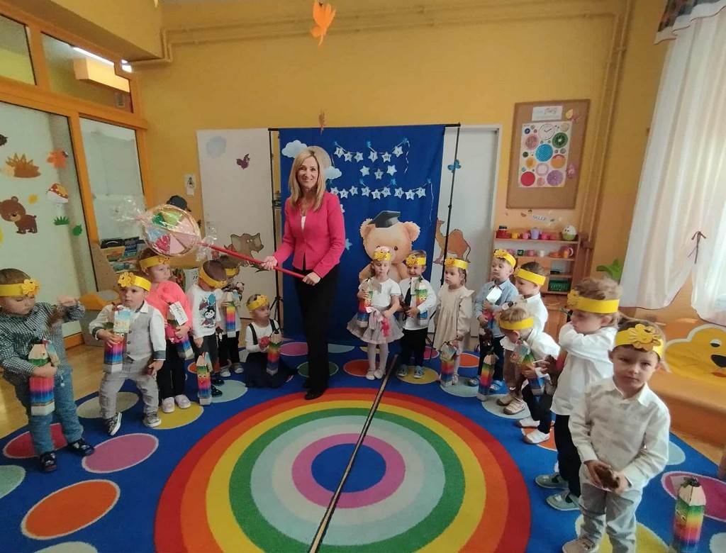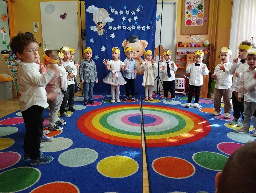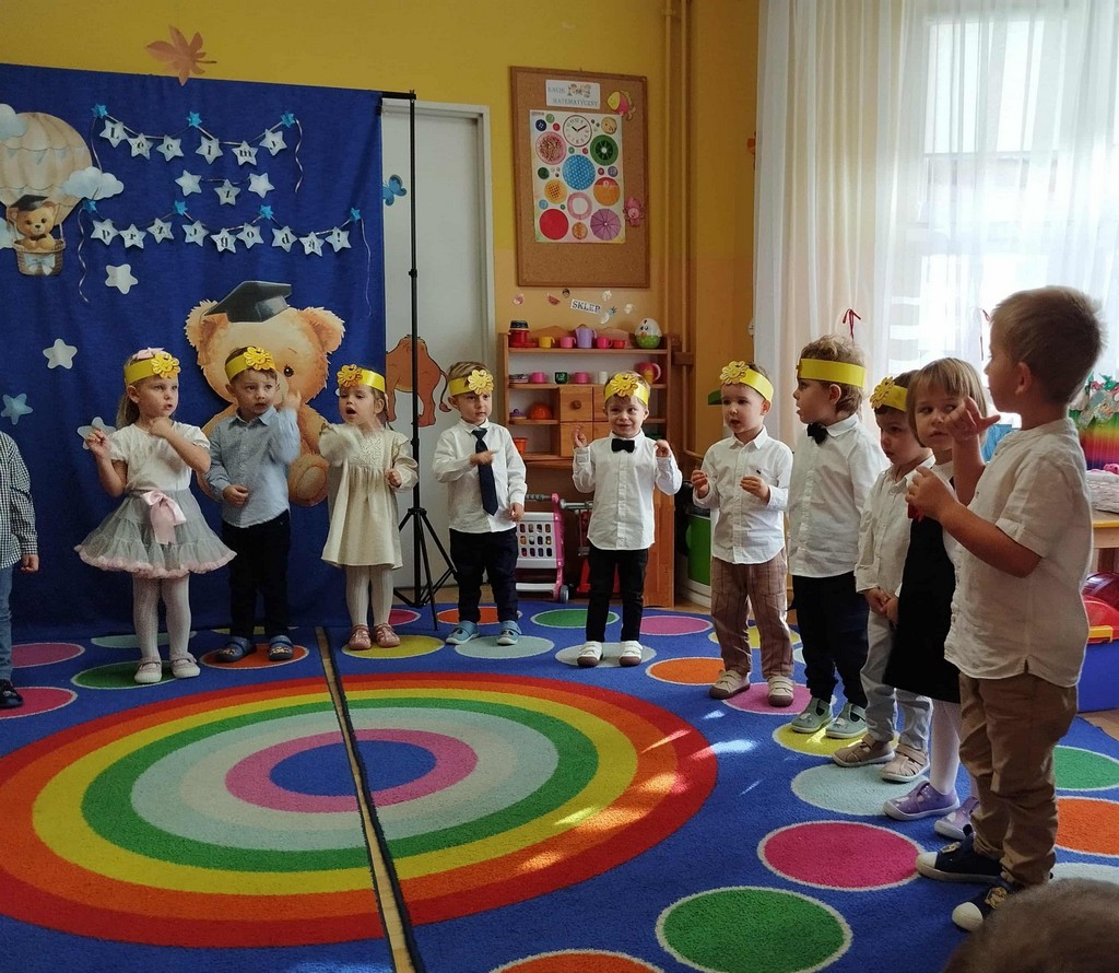 Uroczystość rozpoczęła się od części artystycznej. Dzieci, mimo tremy, zaprezentowały swoje pierwsze nabyte umiejętności – śpiewały piosenki, tańczyły, recytowały wiersz „Mam trzy latka”, udowadniając, że doskonale odnalazły się w nowym środowisku.