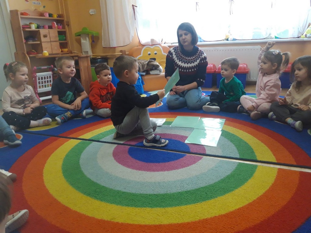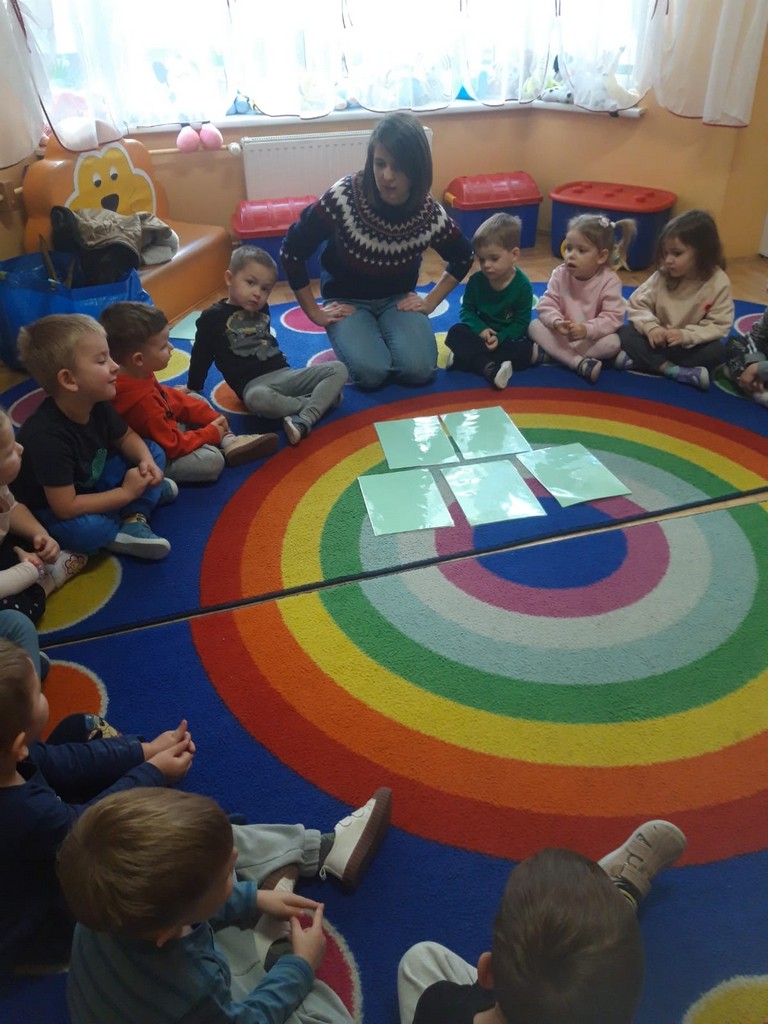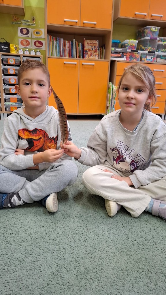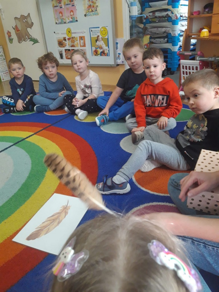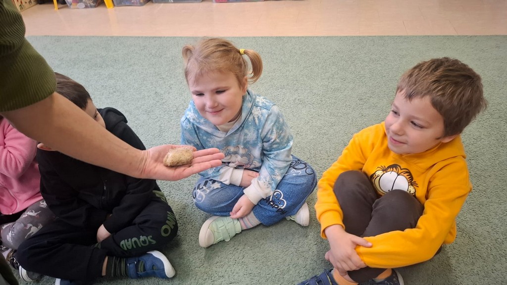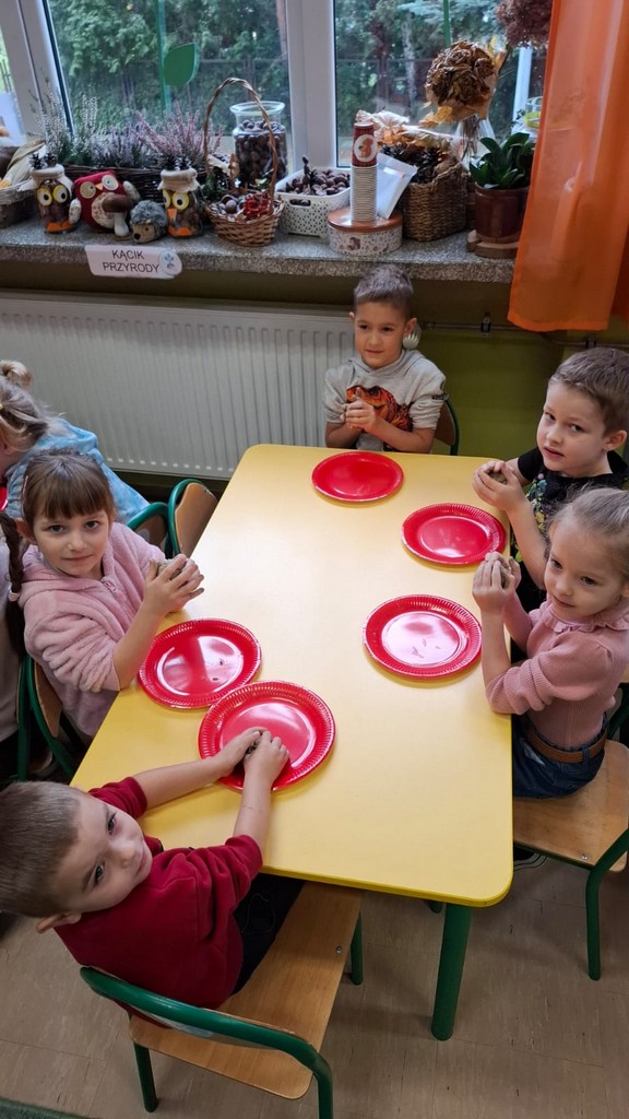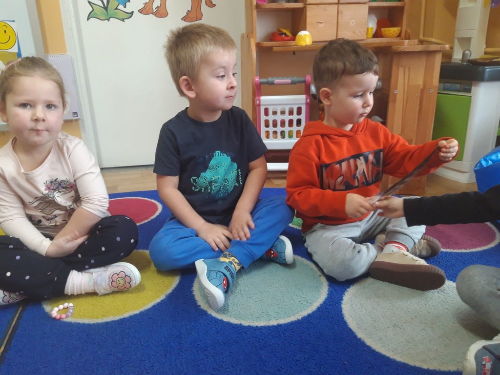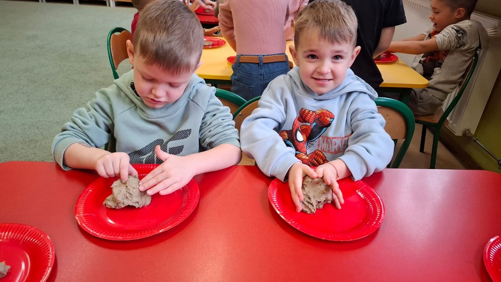 Przedszkolaki oglądały pióra i gniazda ptaków, dotykały poroży jeleni i koziołków, słuchały odgłosów zwierząt i ptaków żyjących w lasach i parkach; poznawały również tropy wybranych zwierząt leśnych. Dużą radość sprawiła dzieciom część warsztatowa podczas której każde dziecko wykonało w glinie odcisk śladu wybranego zwierzęcia. Była to ciekawa pamiątka, którą dzieci zabrały ze sobą do domu. Dziękujemy Fundacji „Dziki Projekt” za kolejne ciekawe i inspirujące zajęcia i już nie możemy doczekać się kolejnych.