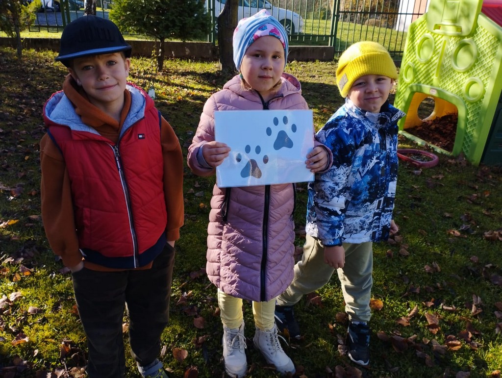 Za nami kolejne zajęcia z cyklu „Dziki Projekt”. Tym razem tematem przewodnim zajęć przyrodniczych były ślady dzikich zwierząt w naszym otoczeniu. Ogród przedszkolny oraz sale zmieniły się na chwilę w małe centrum odkrywców przyrody. Podczas zajęć dzieci poznawały tropy oraz ślady obecności ptaków i dzikich zwierząt, które żyją tuż obok nas, choć często ich nie zauważamy.