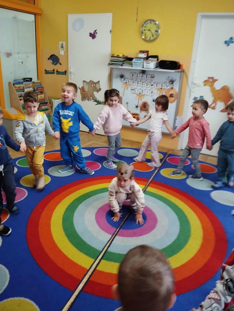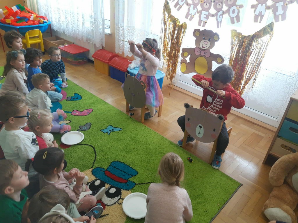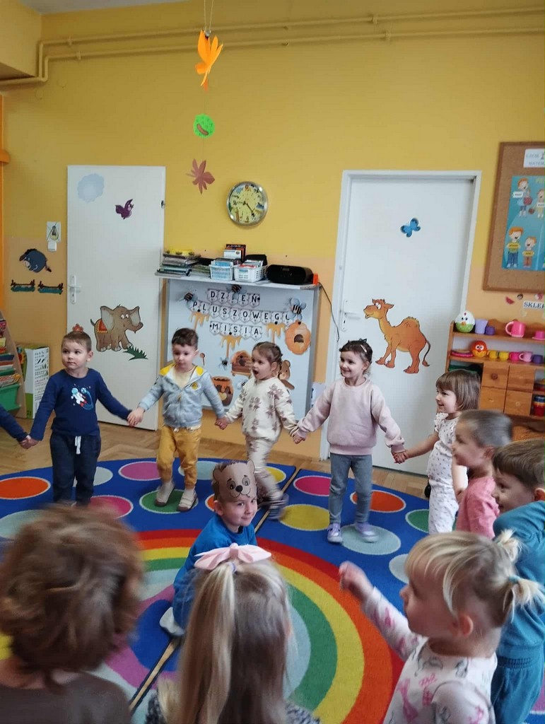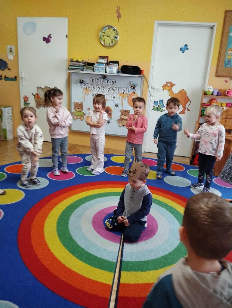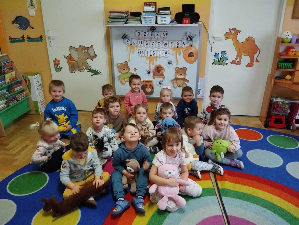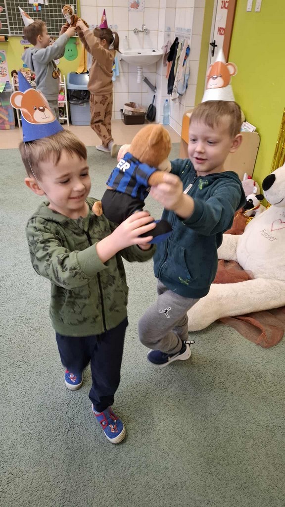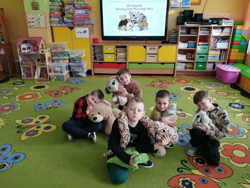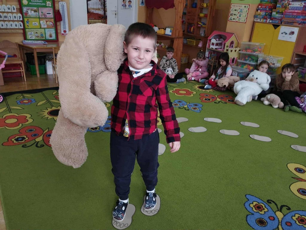 25 listopada tradycyjnie obchodziliśmy „Dzień Pluszowego Misia”. Dzieci przyniosły do przedszkola swoje ukochane pluszaki, a każdy z nich był inny i wyjątkowy. Misie towarzyszyły dzieciom podczas śpiewania piosenek, słuchania tekstów literackich, rozwiązywania zagadek, oglądania bajek. Wśród wielu atrakcji zaplanowanych na ten dzień znalazły się; konkursy, zręcznościowe tory przeszkód, zabawy ruchowe oraz taneczne przy utworach z misiami w roli głównej. Największym jednak wyzwaniem dla dzieci było samodzielne przygotowanie torcików. Biszkoptowe ciasteczka specjalnie upieczone na tę okazję, zostały udekorowane bitą śmietaną, owocami, żelkami oraz kolorową posypką. Torciki nie tylko wyglądały pięknie i kreatywnie, ale smakowały wyśmienicie. Mamy nadzieję, że misiowe przyjęcie pozostanie we wspomnieniach przedszkolaków na długi czas.