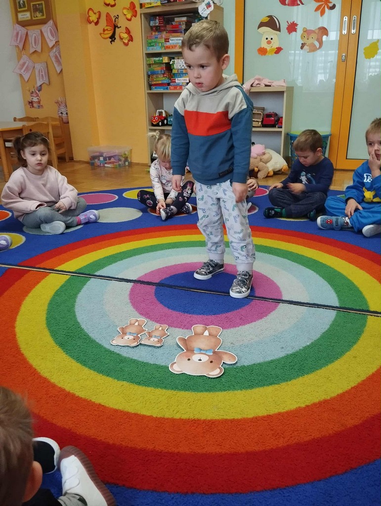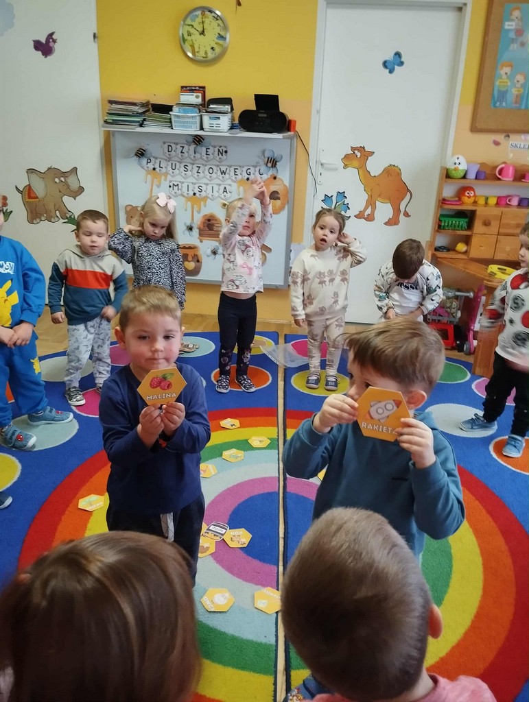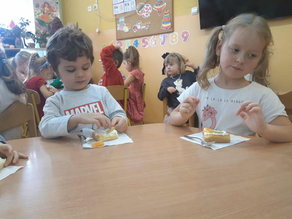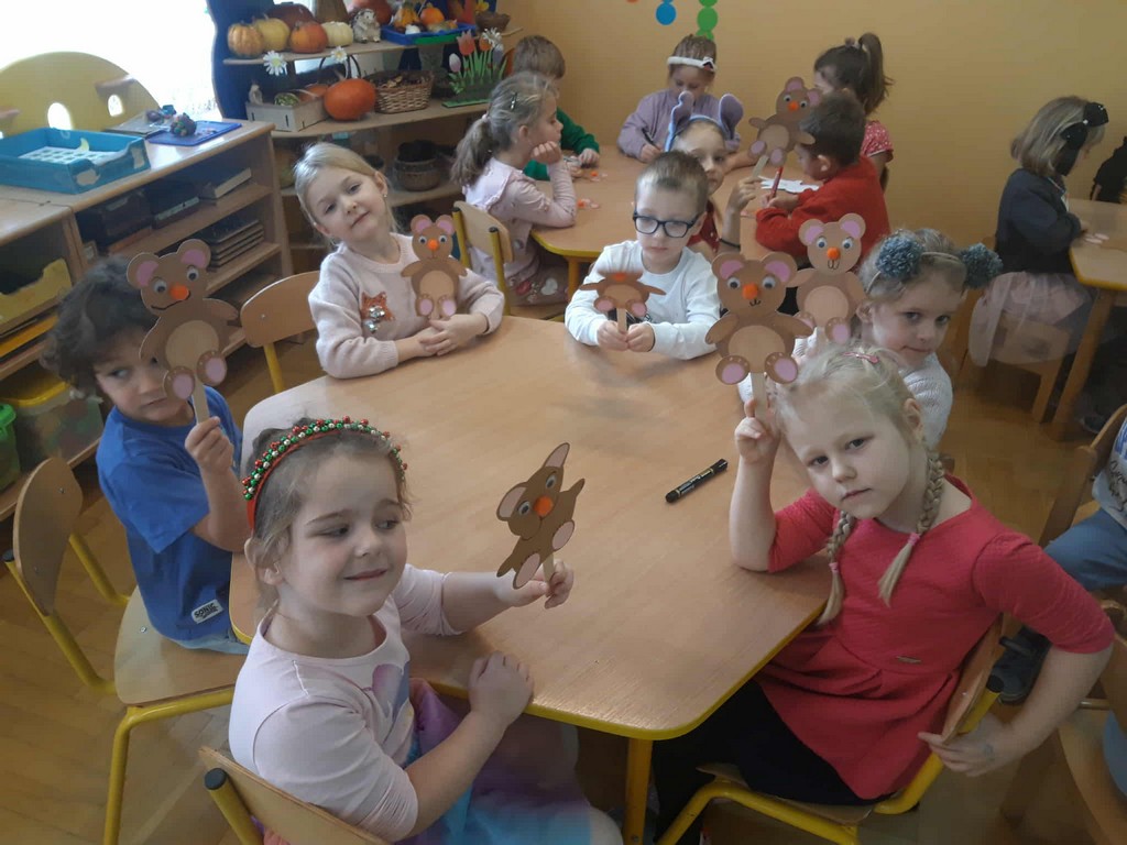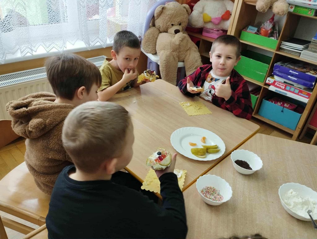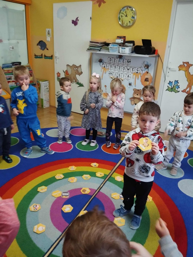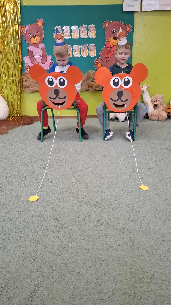 25 listopada tradycyjnie obchodziliśmy „Dzień Pluszowego Misia”. Dzieci przyniosły do przedszkola swoje ukochane pluszaki, a każdy z nich był inny i wyjątkowy. Misie towarzyszyły dzieciom podczas śpiewania piosenek, słuchania tekstów literackich, rozwiązywania zagadek, oglądania bajek. Wśród wielu atrakcji zaplanowanych na ten dzień znalazły się; konkursy, zręcznościowe tory przeszkód, zabawy ruchowe oraz taneczne przy utworach z misiami w roli głównej. Największym jednak wyzwaniem dla dzieci było samodzielne przygotowanie torcików. Biszkoptowe ciasteczka specjalnie upieczone na tę okazję, zostały udekorowane bitą śmietaną, owocami, żelkami oraz kolorową posypką. Torciki nie tylko wyglądały pięknie i kreatywnie, ale smakowały wyśmienicie. Mamy nadzieję, że misiowe przyjęcie pozostanie we wspomnieniach przedszkolaków na długi czas.