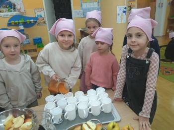 Galerie zdjęć Pyszny i zdrowy sok jabłkowo-marchewkowy w wykonaniu dzieci w grupy I i III 29.10.2025 Jesienna sałatka owocowa w wykonaniu dzieci z grupy II „Pszczółki” 29.10.2025 Warsztaty kulinarne z panią kucharką – przygotowujemy sałatkę jarzynową 29.10.2025 Warsztaty przyrodnicze 27.10.2025 Spotkanie z Panią bibliotekarką 20.10.2025 Światowy Dzień Uśmiechu 7.10.2025 Dzień chłopaka 2025 1.10.2025 Ogólnopolski Dzień Głośnego Czytania 1.10.2025 Jesteśmy bezpieczni na drodze 29.09.2025 Dzień Przedszkolaka 22.09.2025 Wycieczka do Karpackiej Troi 30.06.2025 Bądź Eko - warsztaty ekologiczne 30.06.2025 „Czas rozwinąć skrzydła…”- uroczyste pożegnanie starszaków 27.06.2025 Dzień Rodziny 27.06.2025 Dzień Dziecka 27.06.2025 Piraci i Wyspa Tajemnic 17.06.2025 „Sport to zdrowie, każde dziecko wam to powie” 11.06.2025 Piknik Rodzinny 10.06.2025 „Sprintem do maratonu” 9.06.2025 Dzień Dziecka na Gorlickiej Arenie 5.06.2025